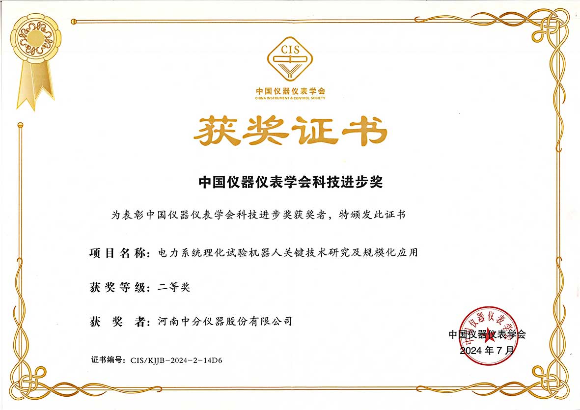 近日,我公司參與的《電力系統理化試驗機器人關鍵技術研究及規模化應用》榮獲中國儀器儀表學會2024年科技進步二等獎。